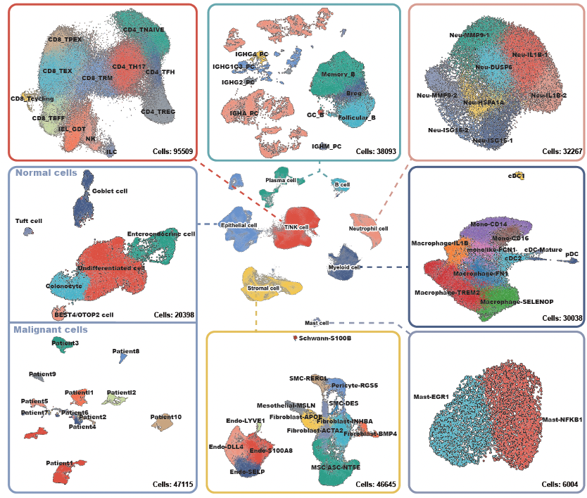 1.单细胞景观揭示CRC与PM的细胞转录变化