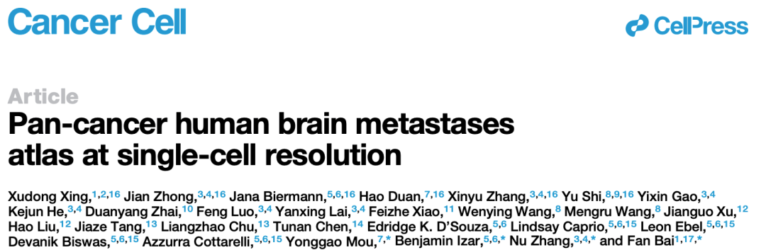北京大学生物医学前沿创新中心(BIOPIC)白凡教授、中山大学附属第一医院张弩教授、中山大学肿瘤防治中心牟永告教授与美国哥伦比亚大学Benjamin Izar教授为本文的共同通讯作者。中国科学院北京基因组研究所(国家生物信息中心)邢旭东研究员、中山大学附属第一医院博士后钟键、博士生张鑫宇、中山大学肿瘤防治中心段昊博士、美国哥伦比亚大学Jana Biermann博士和陆军军医大学西南医院时雨教授为本文的共同第一作者。